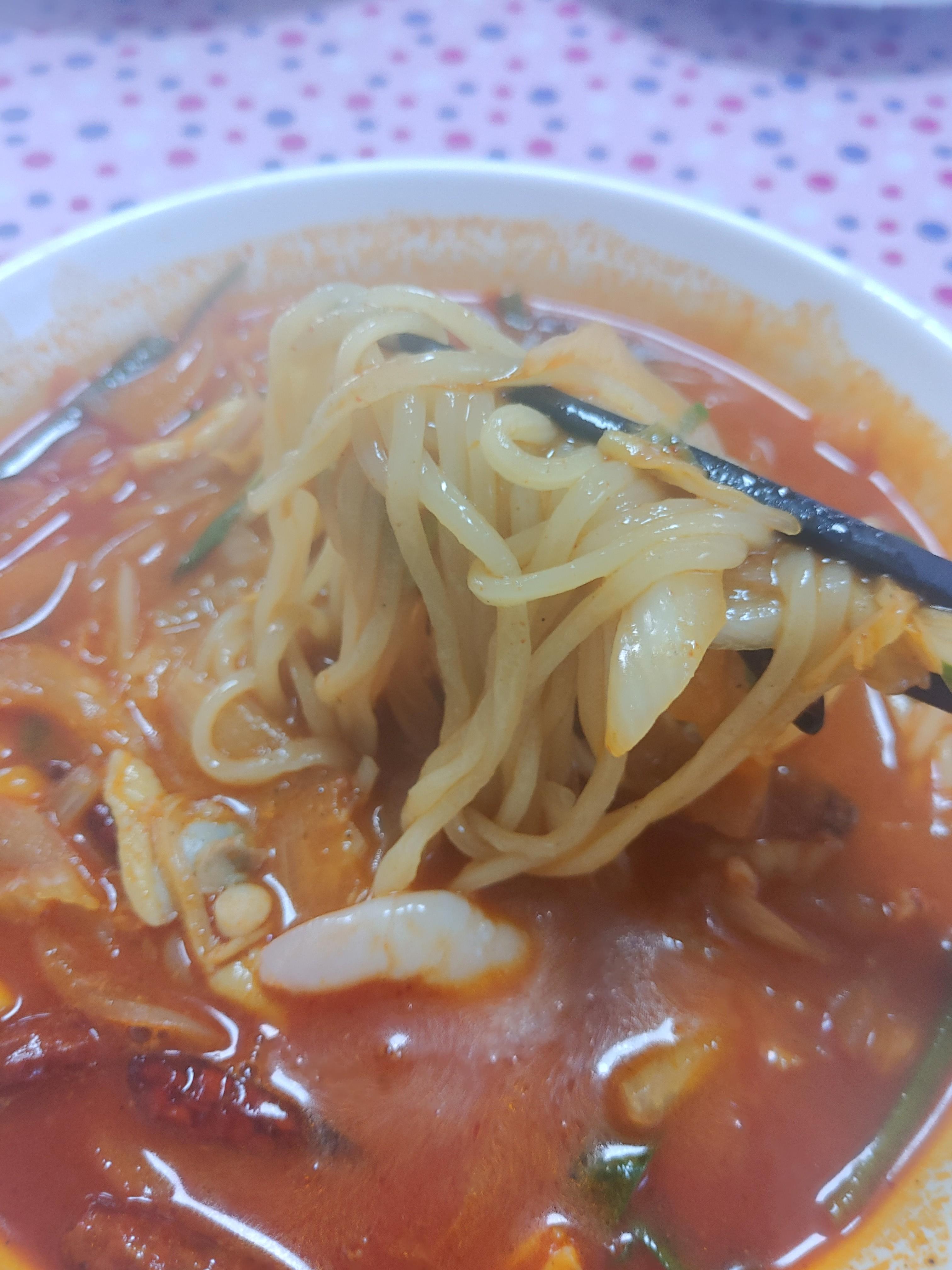 근데 그렇다고 불짬뽕같은 그런 역한 캡사이신의 매운맛이 아니라 짬뽕 본연의 국물맛이 살아있는 그런 맛있는 매콤함이라서 그 점이 가장 특징인 고추짬뽕이라고 생각해요!!