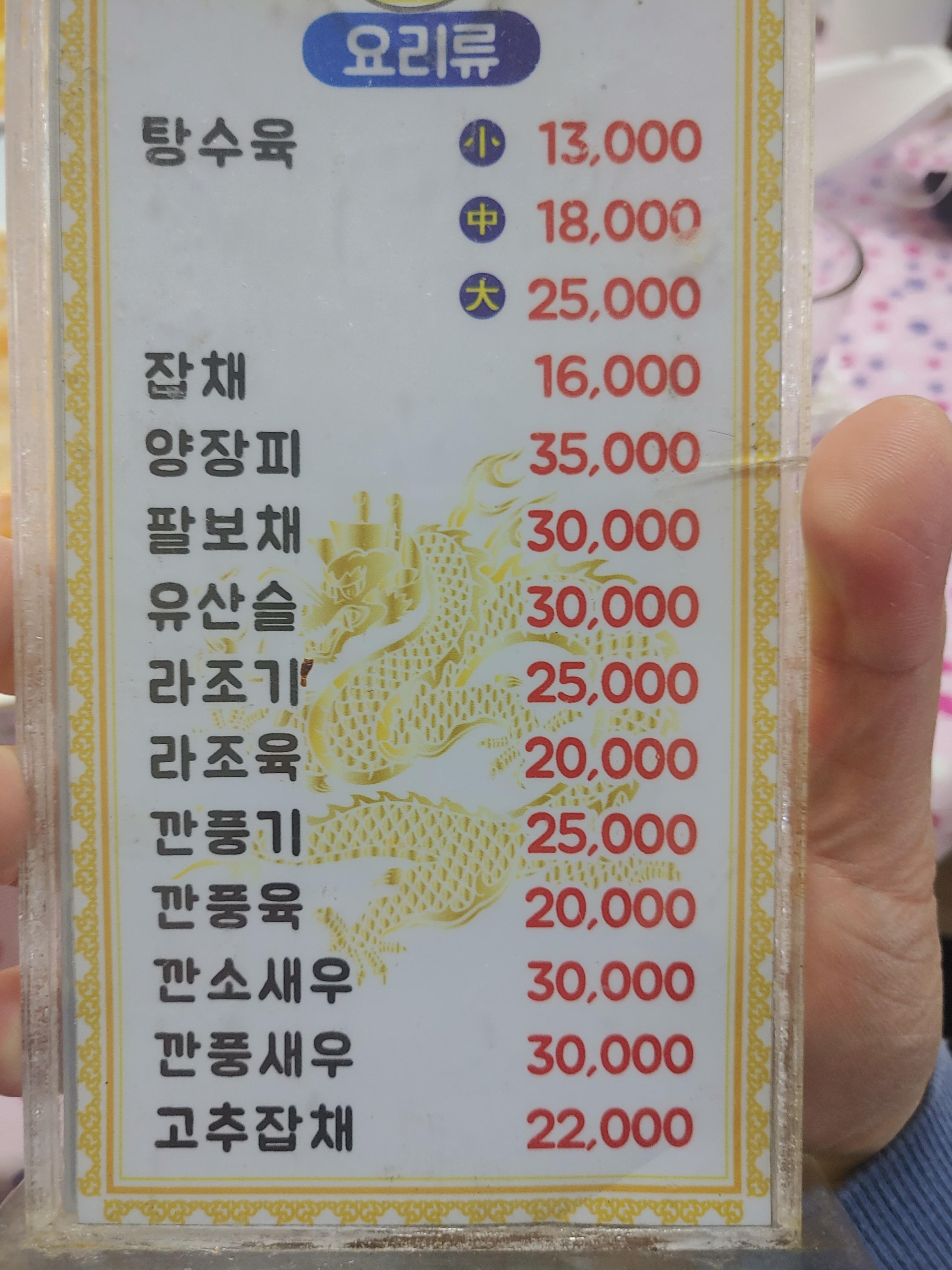 메뉴들은 여기 보시는바와 같이 짜장면부터 짬뽕, 볶음밥등이 있고, 요리에는 탕수육 !! 그리고 유산슬, 깐풍기, 깐소새우 등등 다양한데, 몇가지 먹어봤는데 전체적으로 다 맛있었어요!!