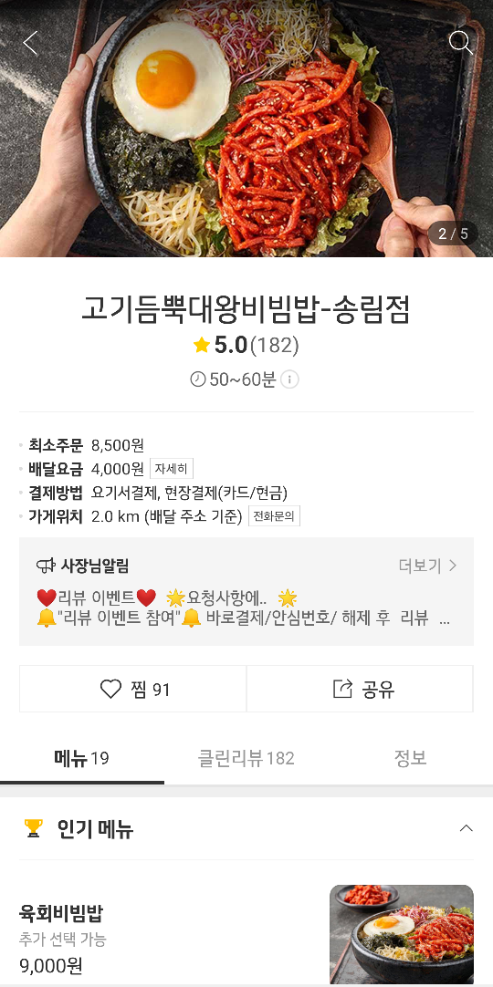 최근에 배달 프랜차이즈들이 참 많고 잘 되어 있는 것 같은데요. 보니까 고기듬뿍대왕비빔밥이라고 하는 프랜차이즈인것 같더라구요. 요기요에서 살펴보다가 주문을 했습니다. 내돈내산 !! 리뷰입니다 !!