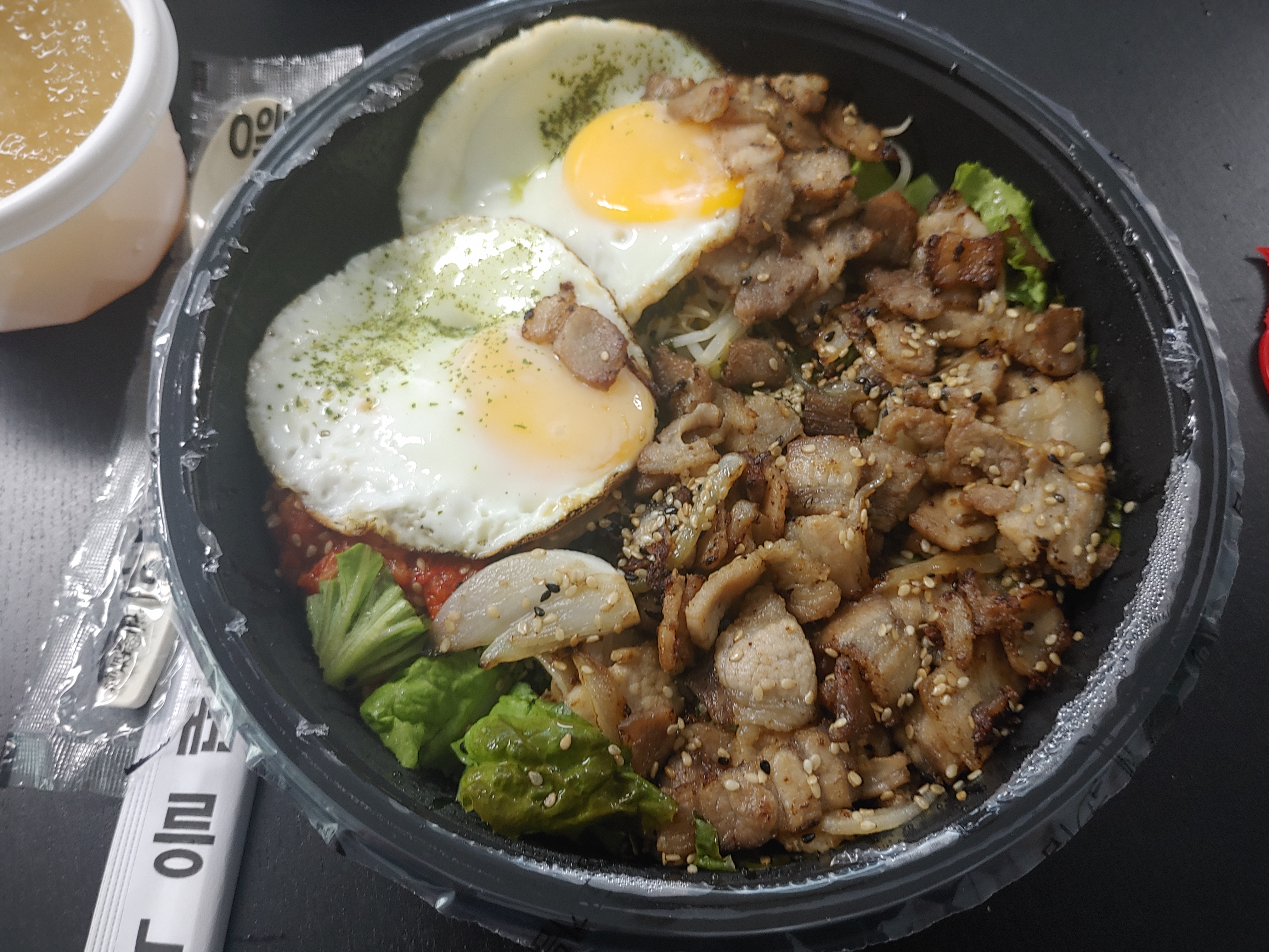 고추장 양념도 그렇고, 전체적으로 맛있는 비빔밥이었어요 ㅋ 사실 고기, 특히 삼겹살을 넣은 비빔밥이 맛이 없을 수 없겠지만 ㅋ 정말 맛있게 한끼 잘 먹었습니다. 앞으로 여기는 몇번 더 주문을 해서 먹을 것 같은데요.