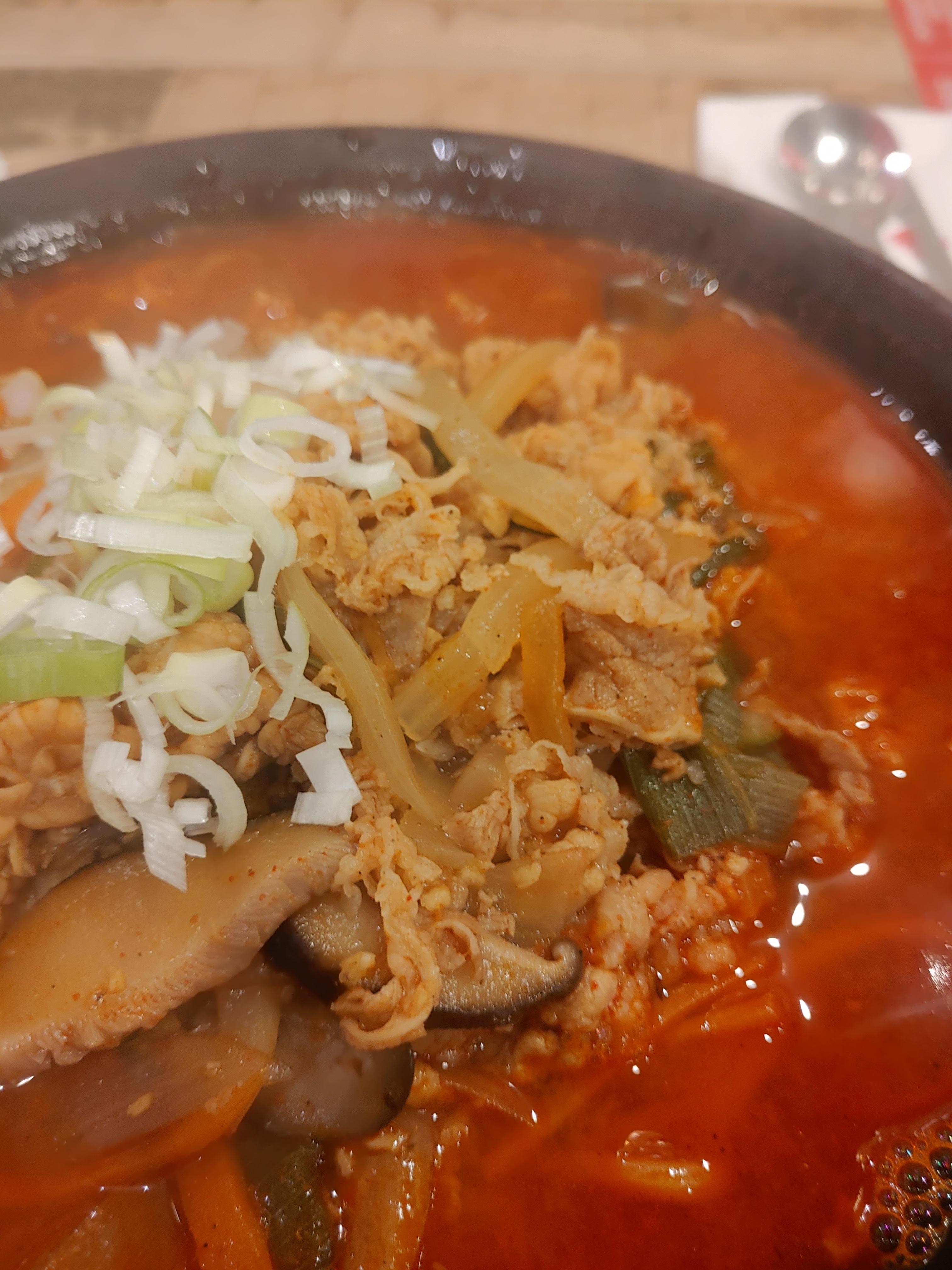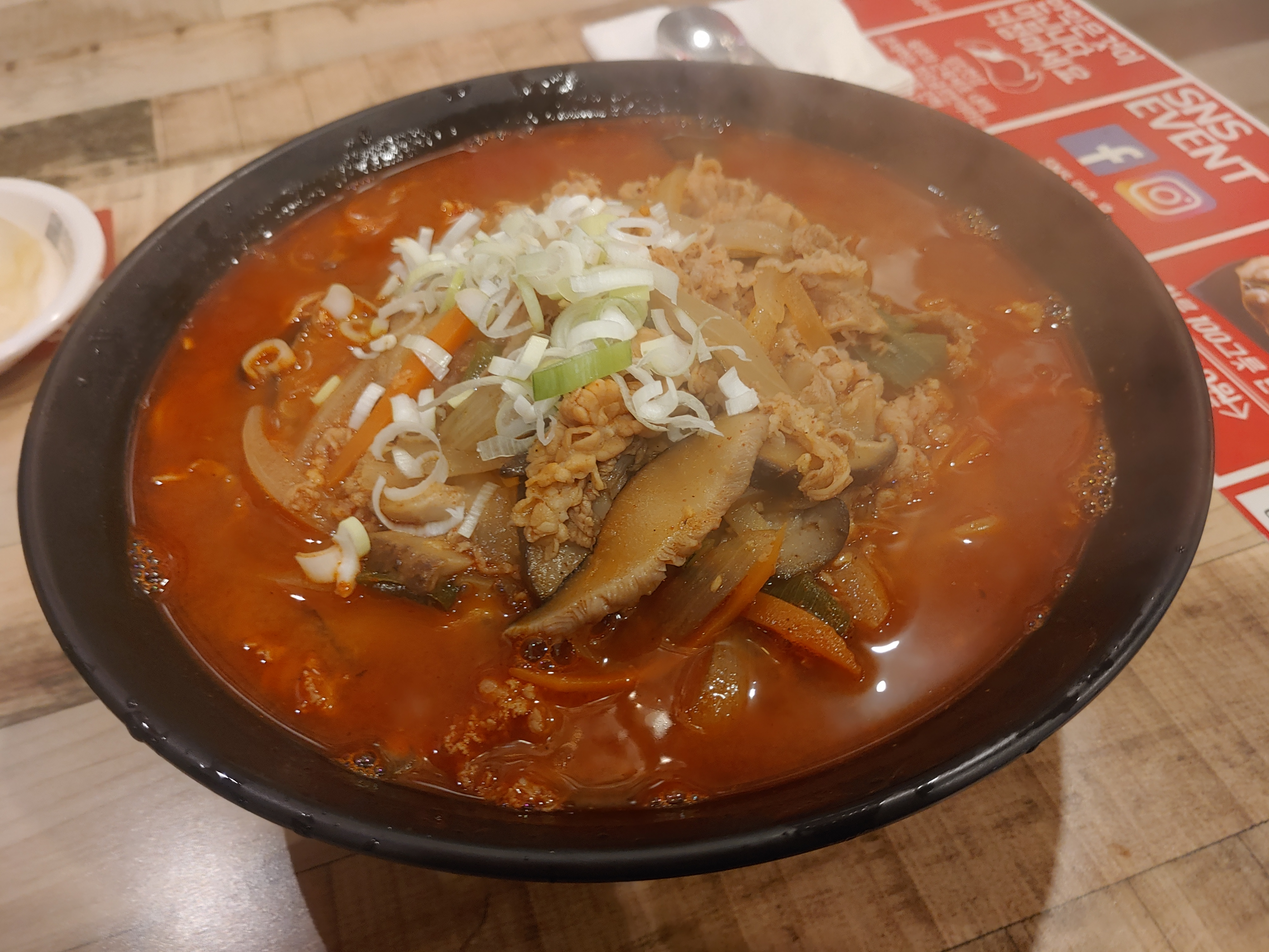 비쥬얼은 나쁘지 않은 것 같습니다 ㅎㅎ 위에 우삼겹이 뿌려져 있는 짬뽕입니다. 개인적으로 고기짬뽕을 너무 사랑하는 입장에서는 꽤 괜찮지 않나 생각이 들기는 했습니다. 양도 넉넉하고, 전체적으로 깔끔한 느낌이었는데요