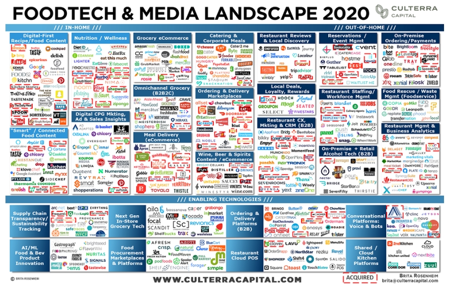집에서는(In Home) 레시피 공유 및 스마트 음식 콘텐츠 그리고 AD&Sale In Sights 등이 있으며, 집 밖에서(Out-of-Home) 접하는 푸드테크 분야는 온라인식료품구입, 배달플랫폼 부터 식당리뷰, 리워드등 다양한 영역에서 회사들이 경쟁을 하고 있습니다.