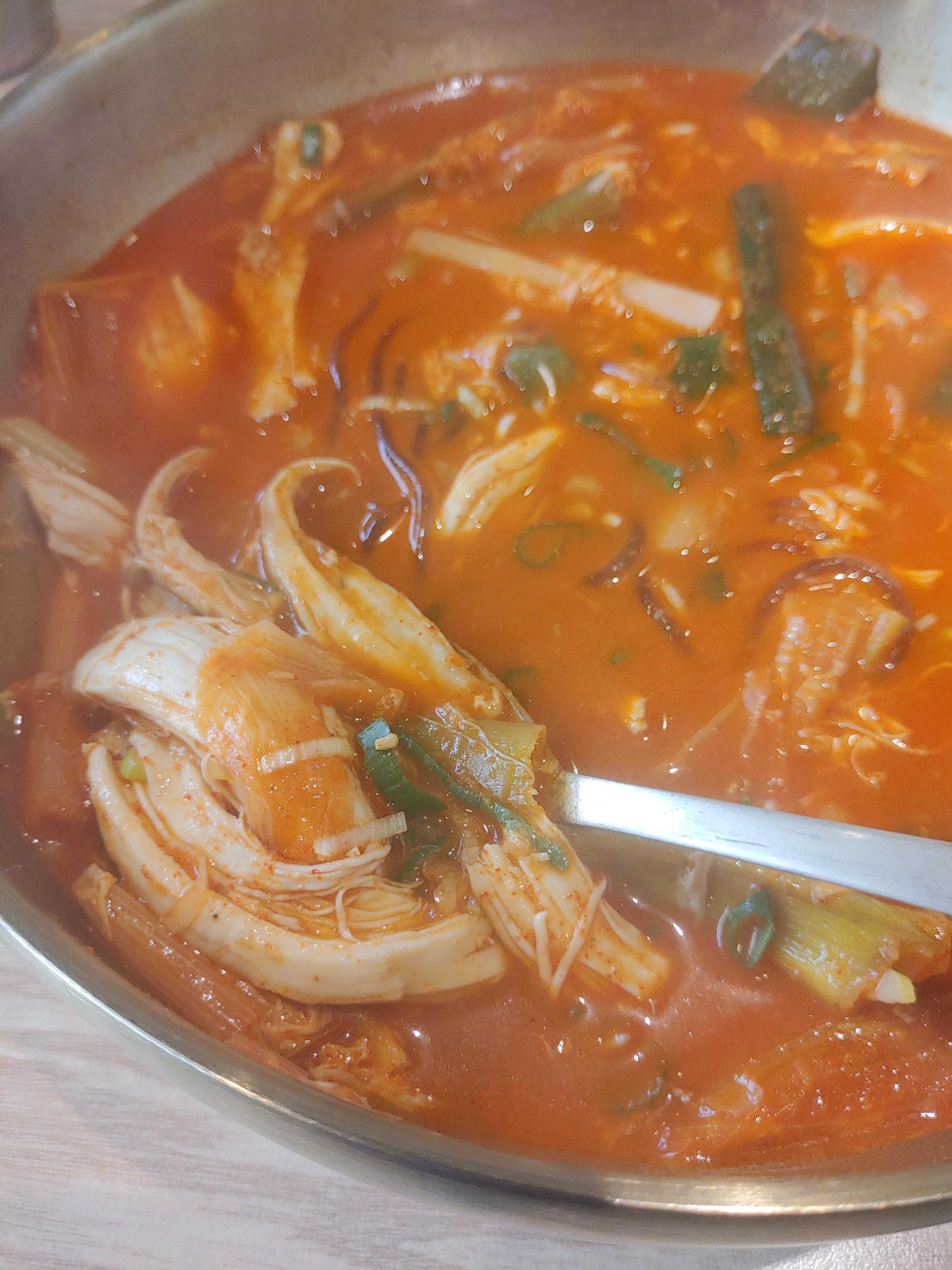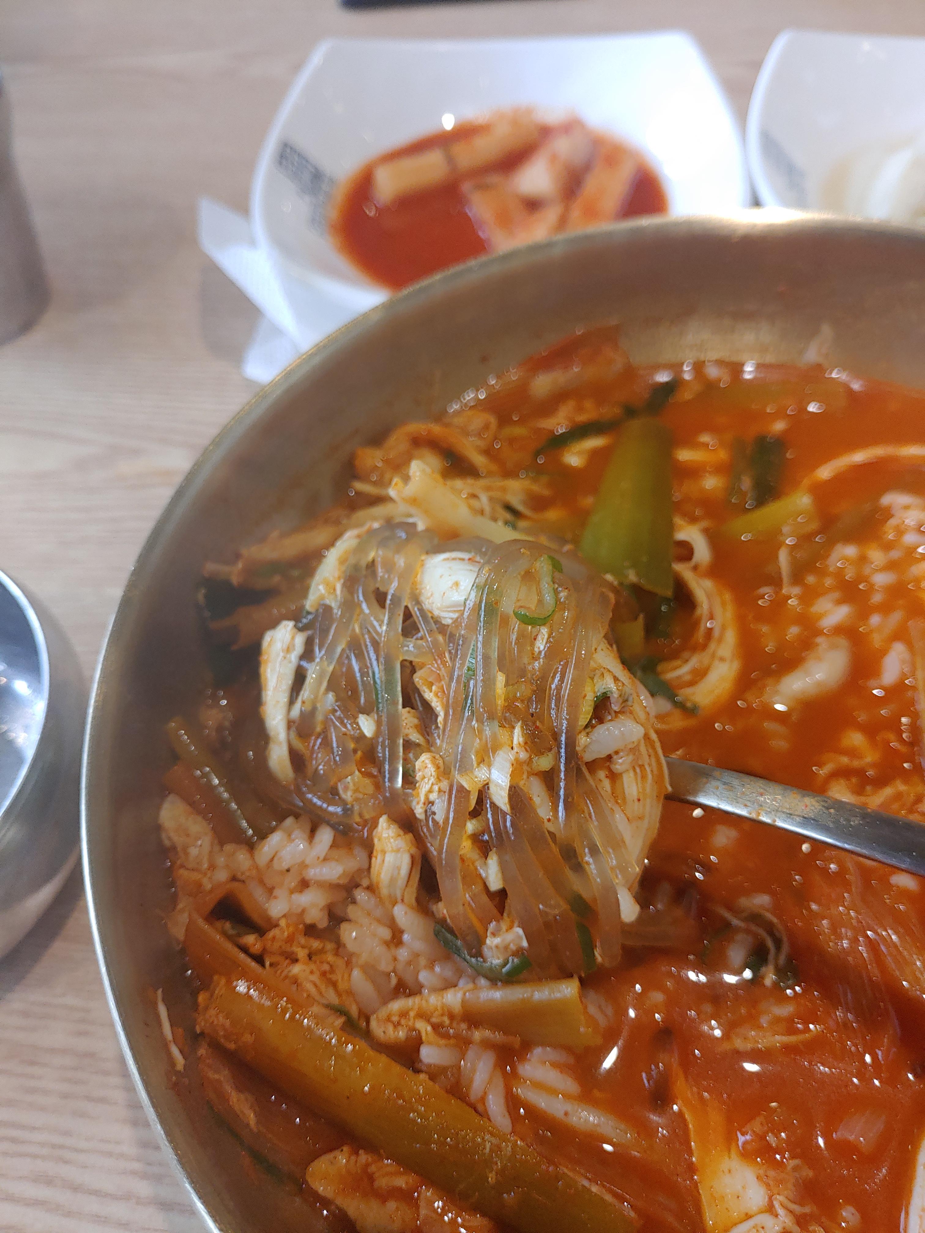 닭고기가 들어가 있어서 그런지 육개장과 삼계탕이 절묘하게 조화를 이룬 느낌도 드는 것 같구요. 전체적으로 맛이 굉장히 괜찮다고 생각을 하는데요. 이번에 갔을 때는 처음 먹어봤을때 보다는 그 감동이 조금 덜해진 느낌도 있지만 그래도 여전히 얼큰한 국물이 아주 좋더라구요.