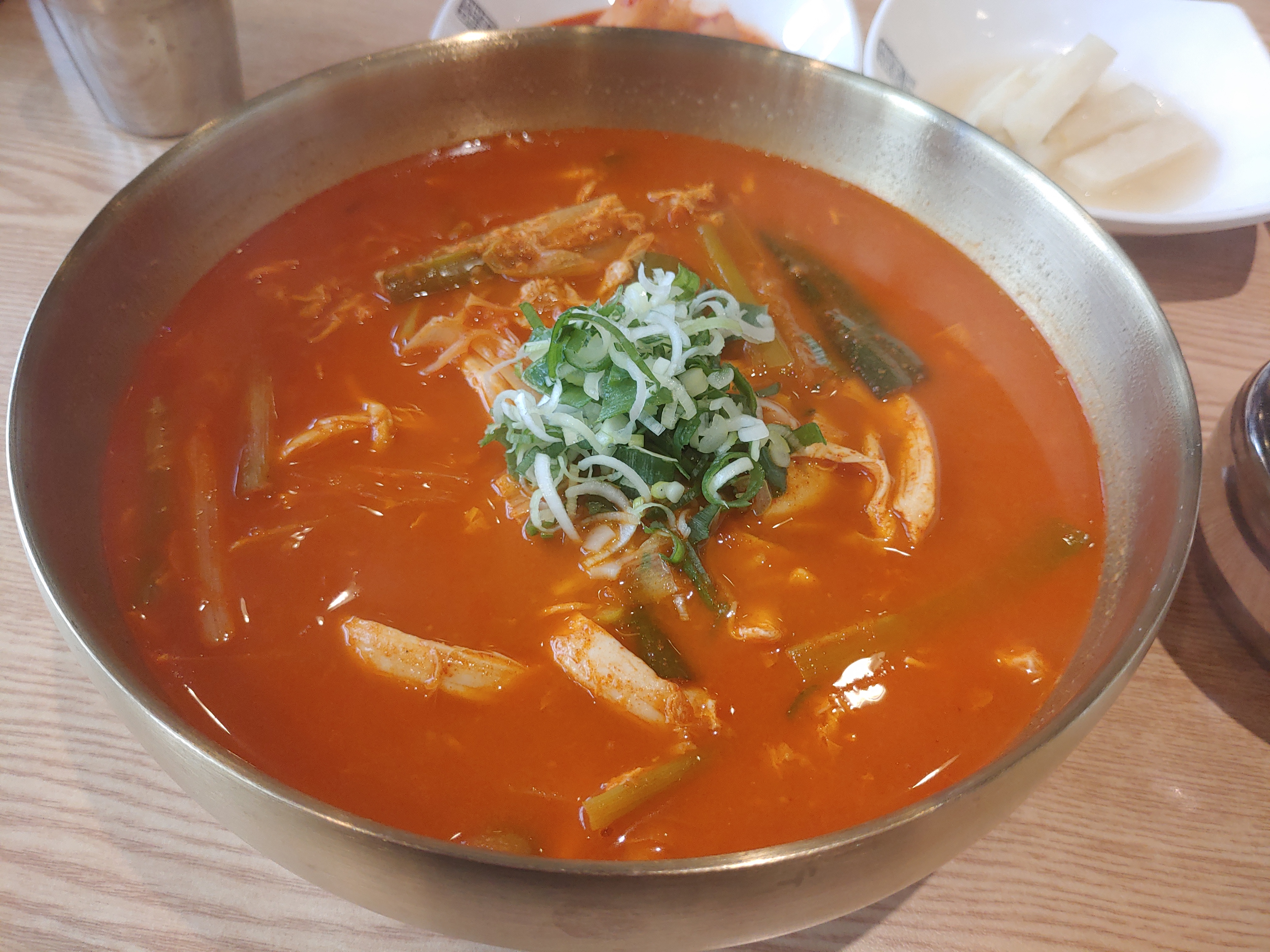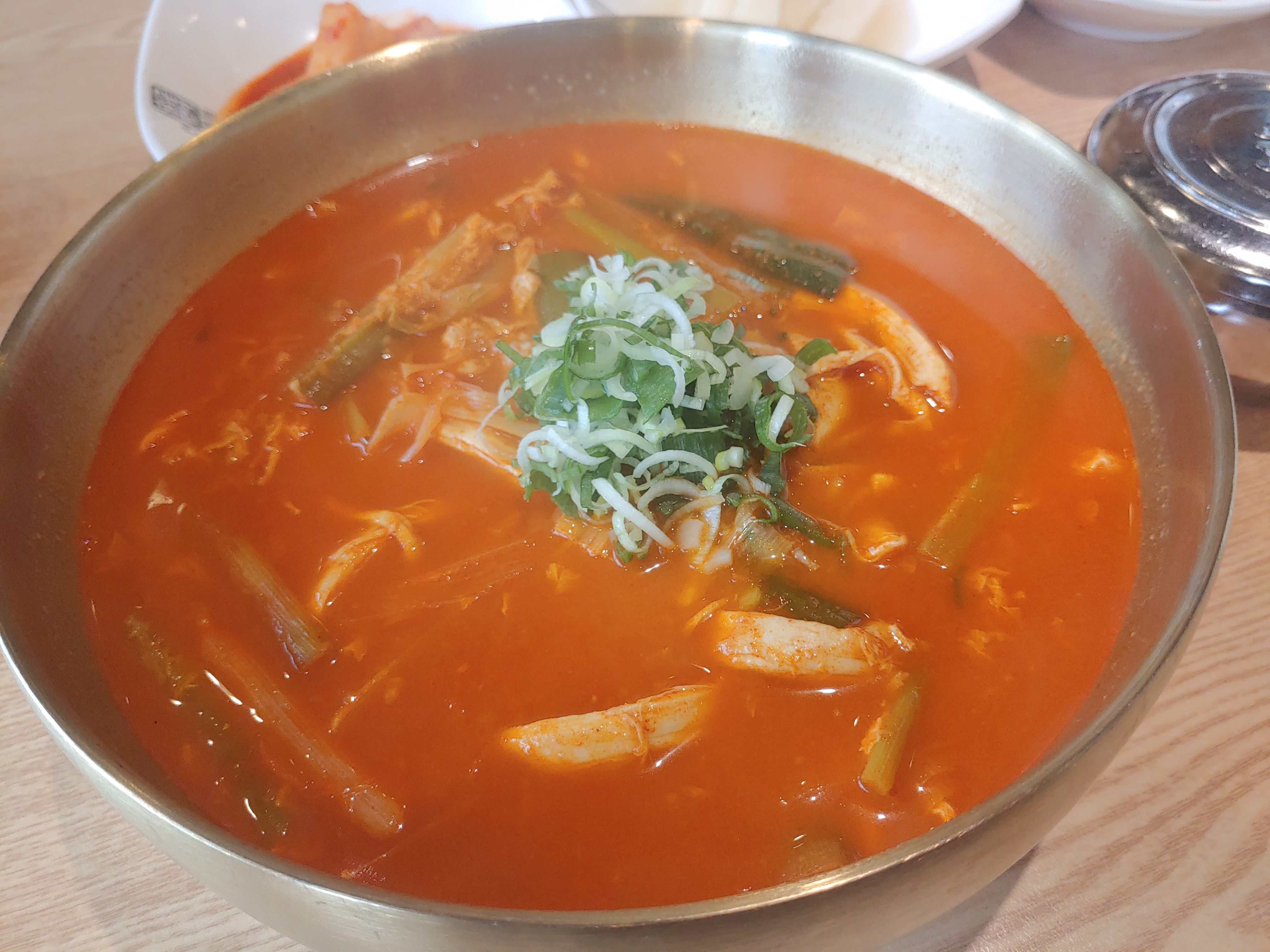 국물이 굉장히 진한 느낌이고, 닭고기가 들어간 삼계탕 국물 만큼이나 깔끔한 맛도 함께 있는 그런 맛이에요. 게다가 파닭개장특유의 매콤하고 얼큰한 맛이 잘 담겨져 있어서 그런지 담백하고 깔끔하면서도 얼큰한 국물이 정말 인상적이었어요. 그래서 한번씩 이렇게 영종도 운서동 근처에 오면 닭곰탱이가 생각이 나더라구요