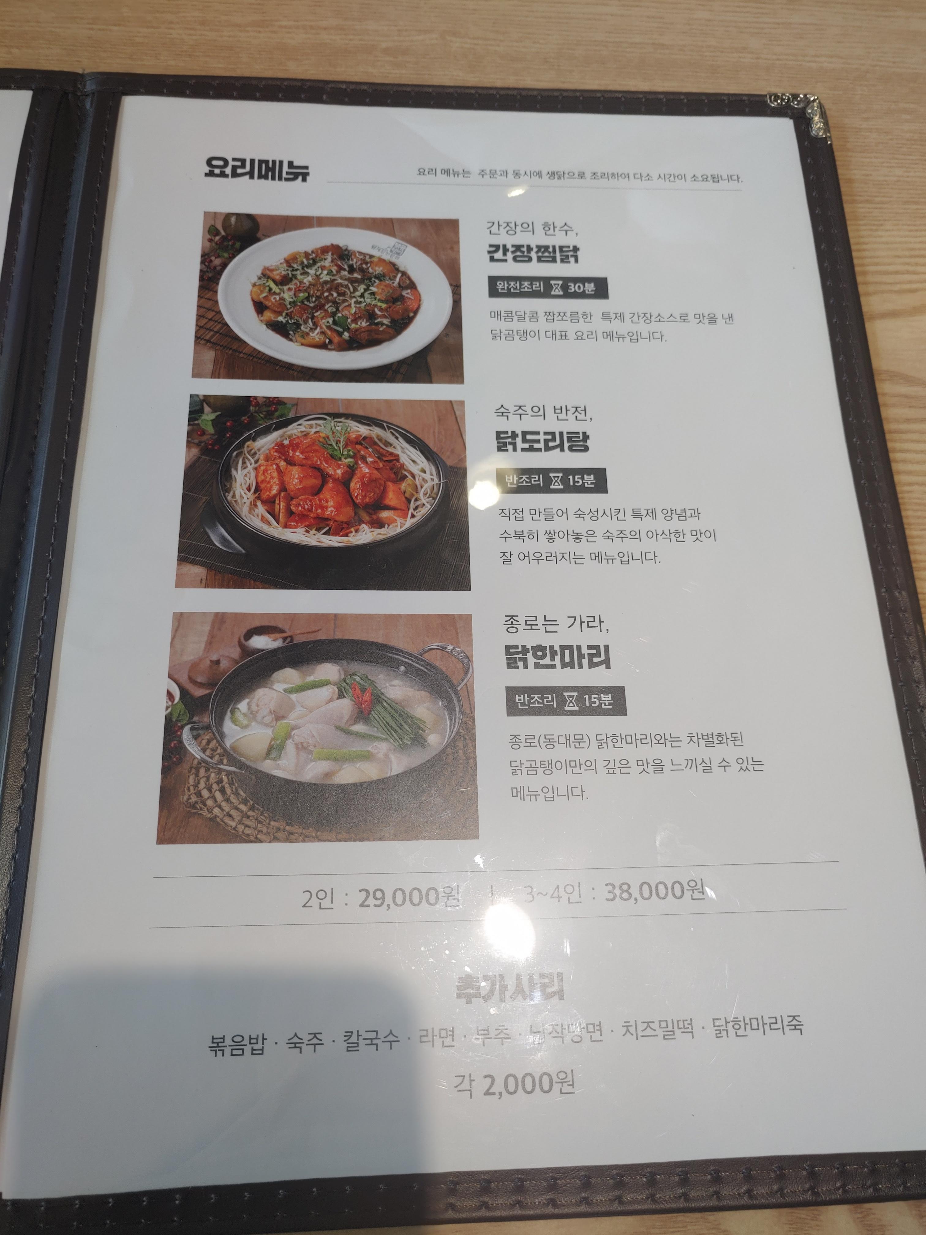 그외에요 닭한마리 !! 닭도리탕, 간장찜닭등의 요리들도 있구요.
