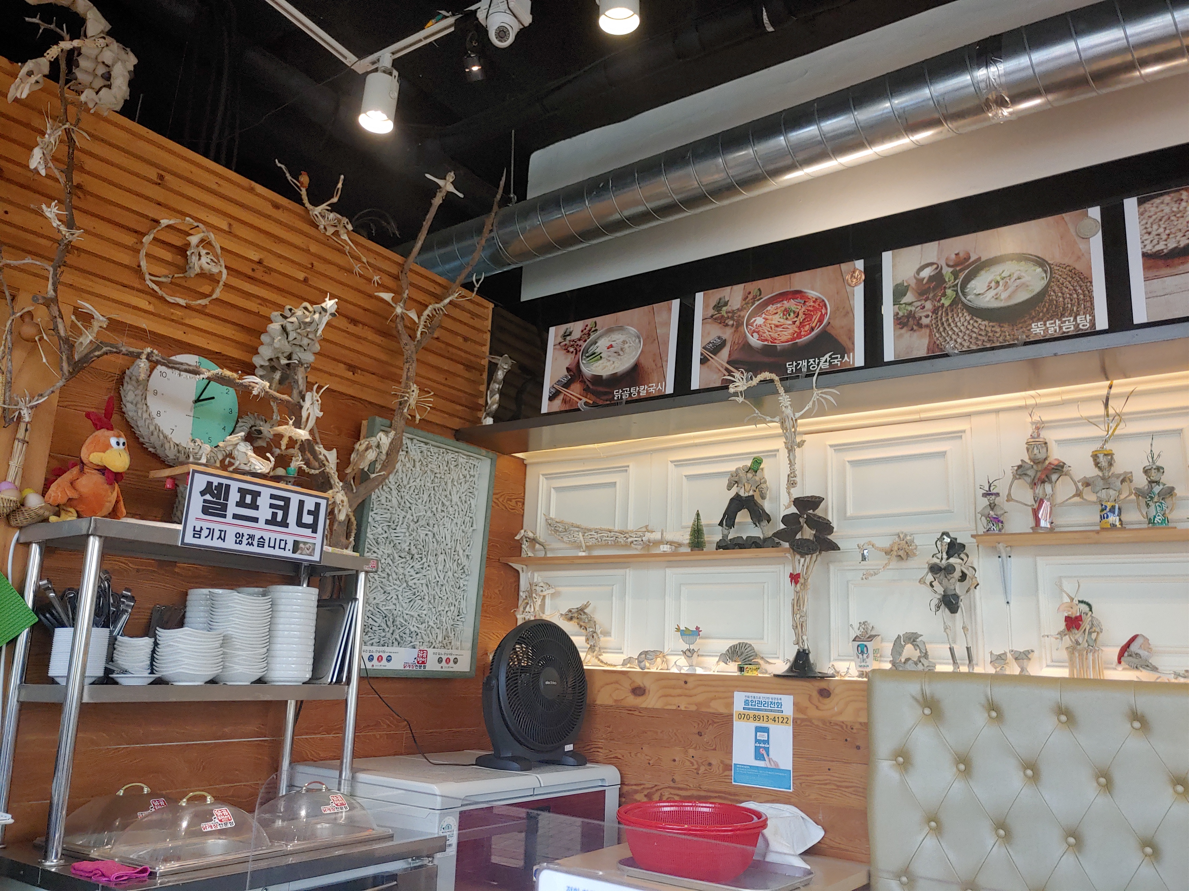 닭곰탱이 내부는 굉장히 신기한게 뭔가 닭뼈인지, 신문지인지 잘 모르겠는 그런 특이한 인형? 조형물? 같은 것들이 있어요. 정말 신기하게 만들어져 있는데요. 뭔가 신기한 느낌 ㅎㅎ 이에요. 처음왔을때도 굉장히 신기하다 생각을 하긴 했네요.