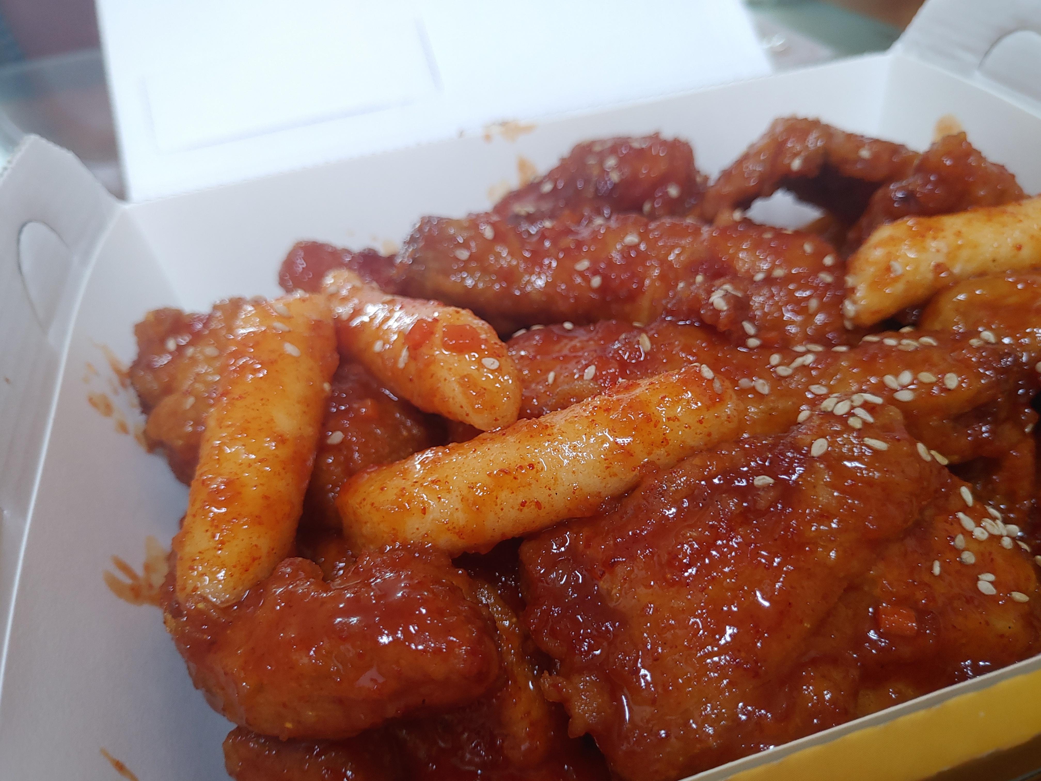치킨 비쥬얼!! 어마어마합니다. 진짜 양념치킨의 정석을 보여주는 멕시카나 부평광장점의 양념치킨인데요. 이 빨간 비쥬얼에 정말 달달한 그 양념치킨의 맛이 너무너무 좋습니다. 치킨을 처음 딱 열었을 때의 그 감동을 진짜 제대로 느낄 수 있는 비쥬얼이 아닐까 싶네요 ^^